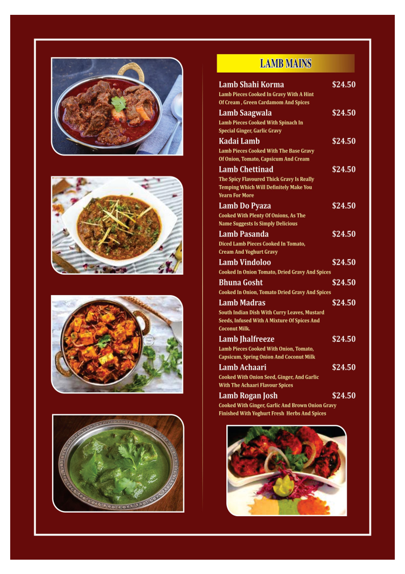 Lamb pieces cooked in gravy with a hint of cream, green cardamom and spices.